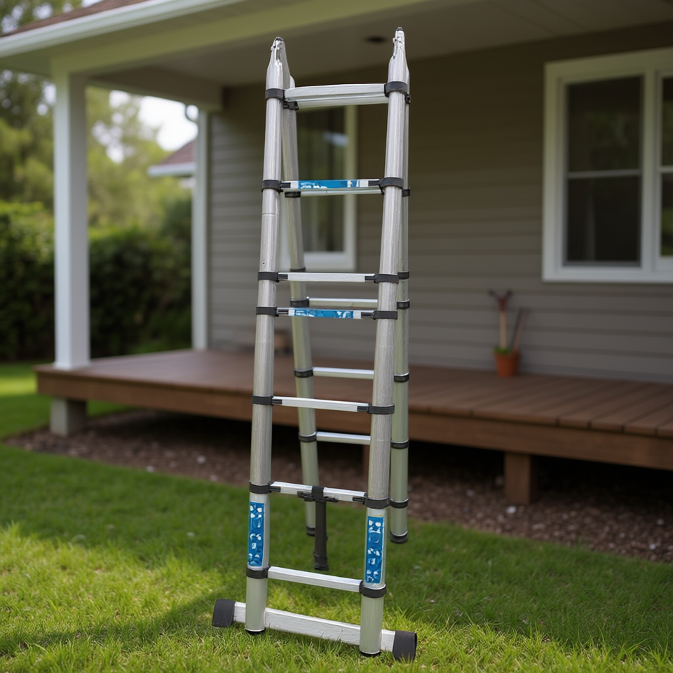 Échelle télescopique en aluminium de 12 pieds, 12 marches, capacité de 250 lb, pour usage domestique et extérieur, échelle industrielle