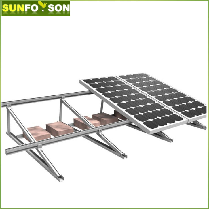 Système de support de montage solaire pour toit plat en aluminium Support de panneau PV réglable pour usage commercial et résidentiel