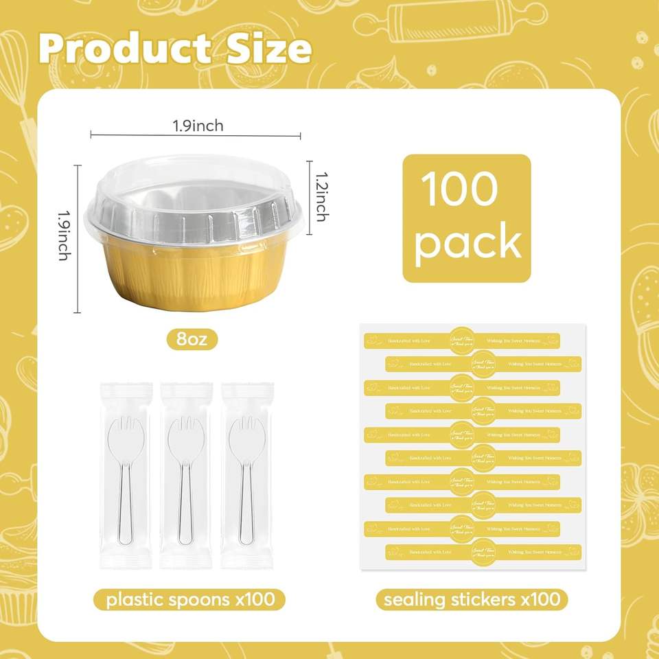 Mini moules à pâtisserie carrés en aluminium avec couvercles, 5 oz, en PET, jetables, pour cupcakes, pain, muffins, cheesecakes