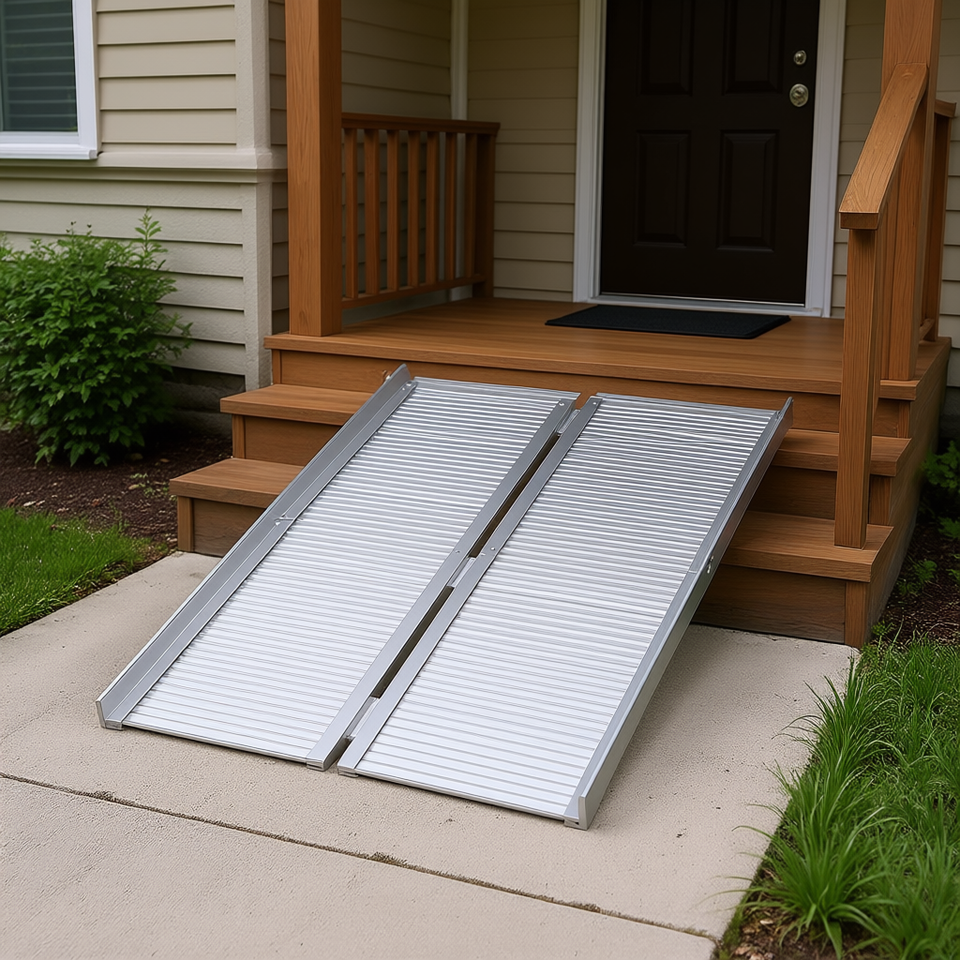 Rampe pliable en aluminium pour fauteuil roulant, 5 pieds, argentée, texturée, sécurisée pour les escaliers et les portes