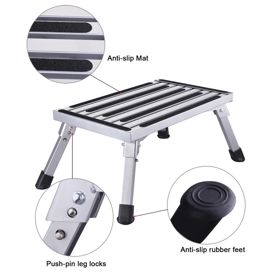 Aluminum Folding Platform Steps Anti-Slip Surface RV Step Stool Portable Ladder Stools EN131 Certificate Folding Ladder Stool