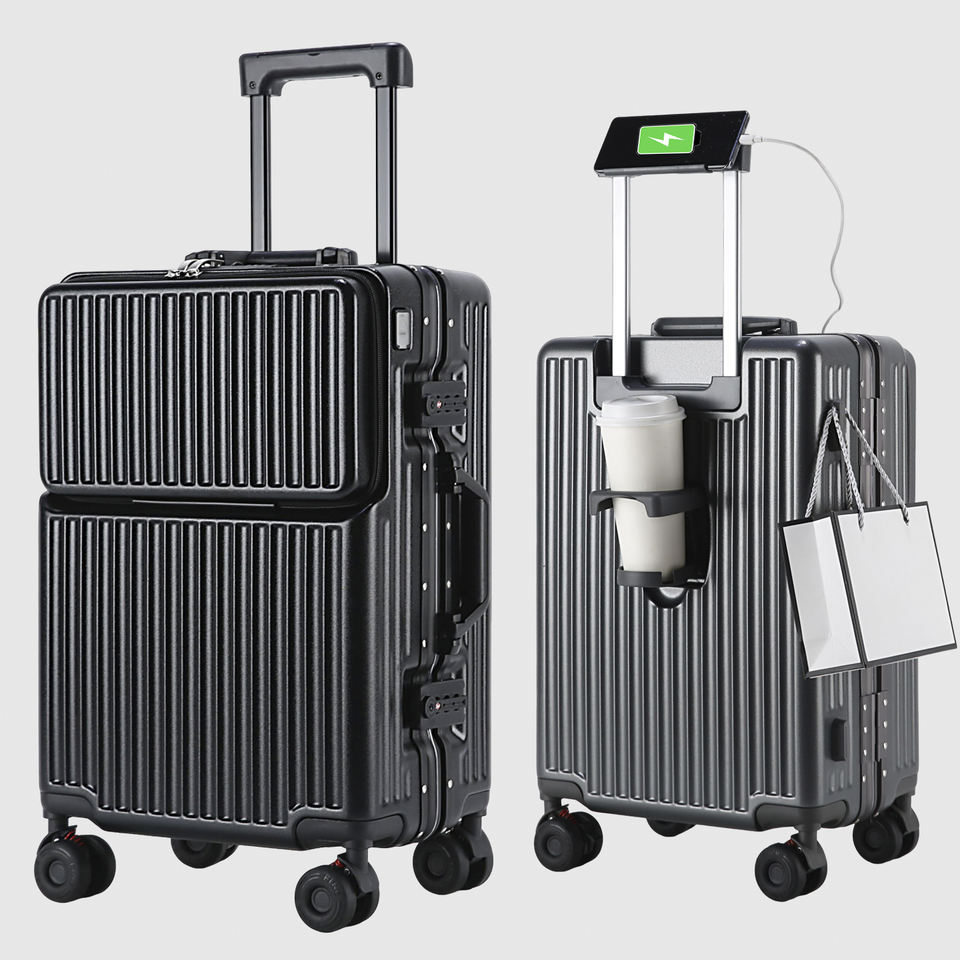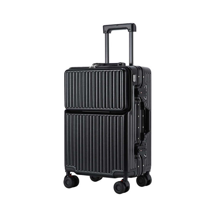 Valise cabine à texture PC avec cadre en aluminium, ouverture frontale, serrure TSA, roues silencieuses pour avion, approuvée par les compagnies aériennes