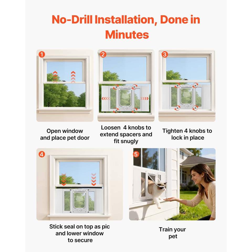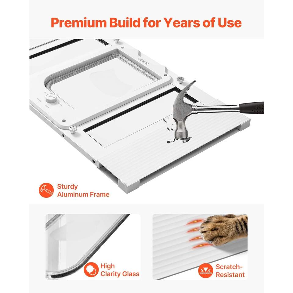 Porte pour chat en verre haute transparence avec cadre en aluminium pour fenêtres, 4 modes de verrouillage sécurisés, ajustement adaptable pour une largeur de 23 à 28 pouces