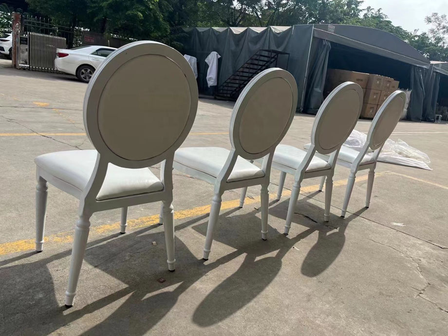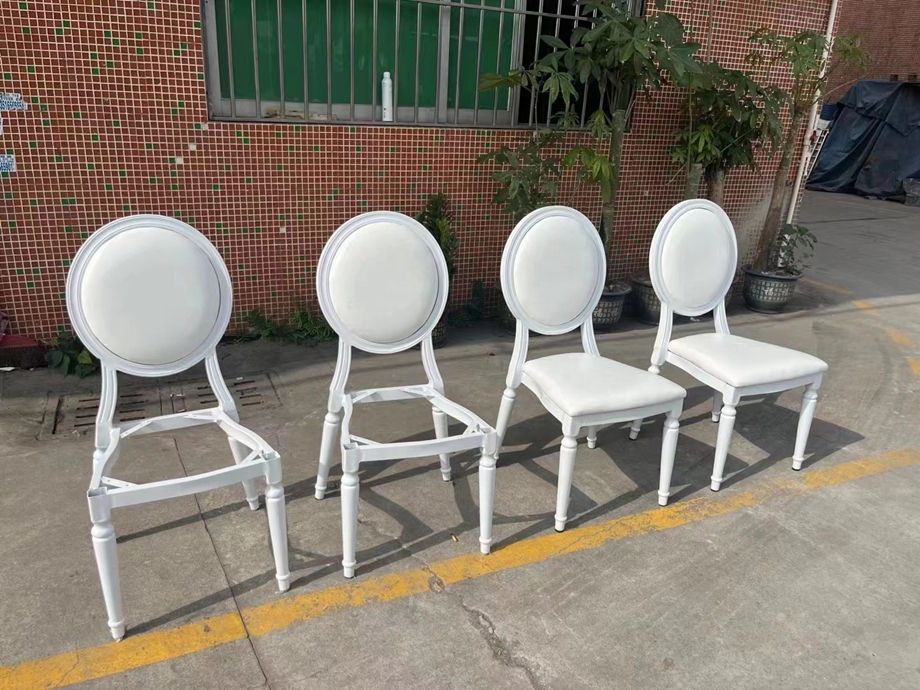 Chaise d'hôtel Louis à cadre en aluminium Chaise de salle à manger de mariage à dos rond blanc de style français à vendre