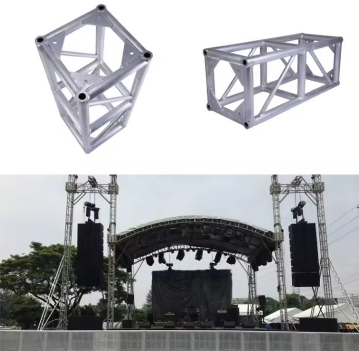 Poteau de but en aluminium Meuble TV Spigot personnalisé Présentoir à treillis carré pour écran LED pour événements extérieurs