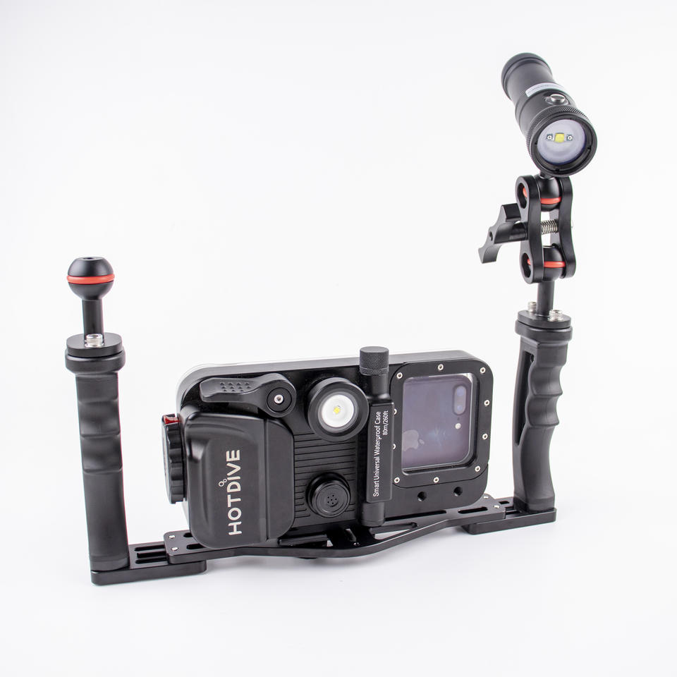 Bras de poche en aluminium, plateau d'appareil photo de plongée sous-marine, boîtier de photographie, double plateau universel