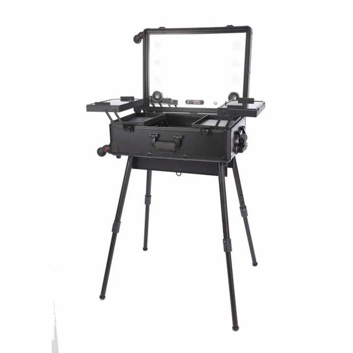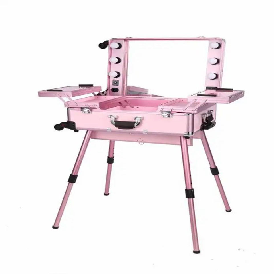 Mallette de maquillage en aluminium avec support mallette de maquillage professionnelle avec lumière led miroir chariot mallette cosmétique éclairée