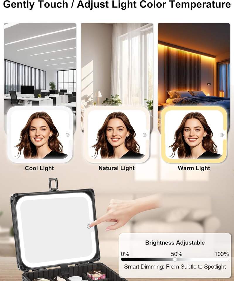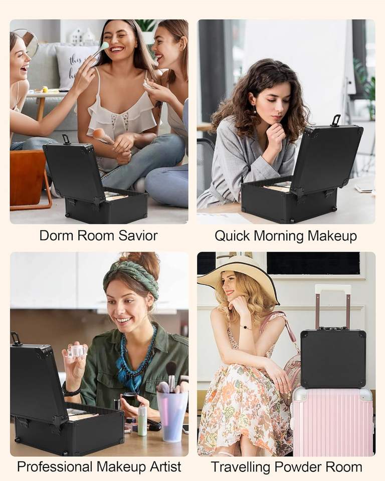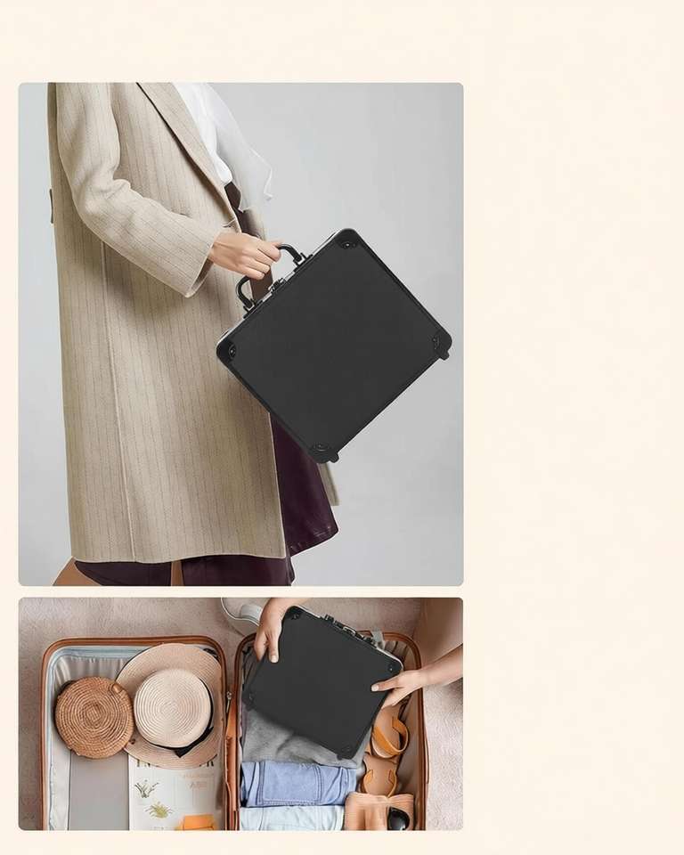 Trousse de Maquillage en Aluminium Pliable avec 2 Plateaux, Miroir, Verrouillable, Étanche, Antichoc, Grande Capacité, Portable