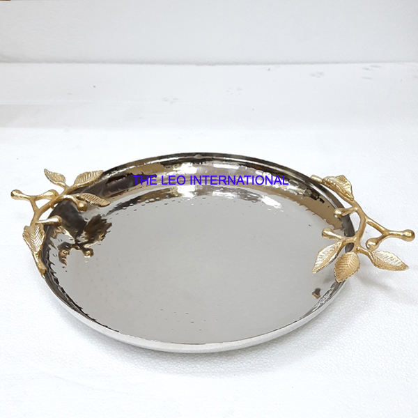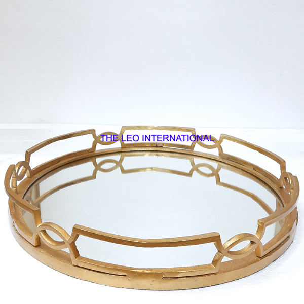 Plateau de service en aluminium de forme ronde et doré Style fantaisie fait à la main Vente à chaud Plateau décoratif de la plus haute qualité