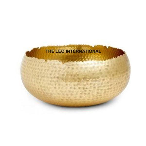 Bol décoratif en métal doré tendance avec un design unique à bords brisés, forme ronde moderne pour une décoration élégante de la salle à manger et de la maison