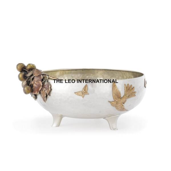 Bol en métal aluminium de forme ronde plaqué argent Bol de luxe pour fruits et snacks Vente chaude Bol décoratif pour la maison