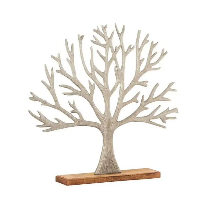Aluminum Metal Sculpture for Christmas Religious Use New Arrival Centerpiece With Wooden Base Antique Metal Touches Designed