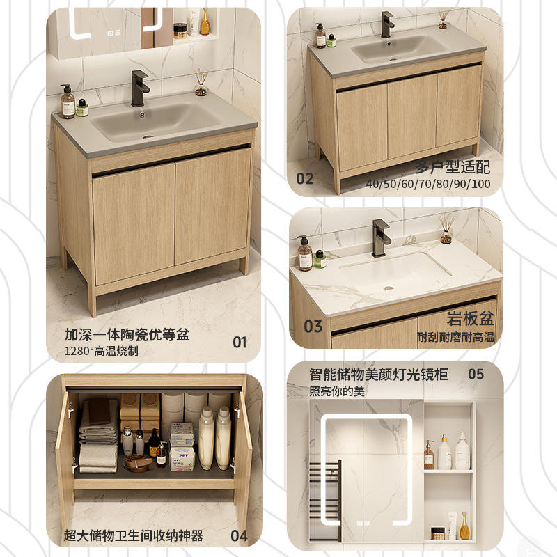 Natural wood-colored floor-to-ceiling door with gray ceramic basinPart Number