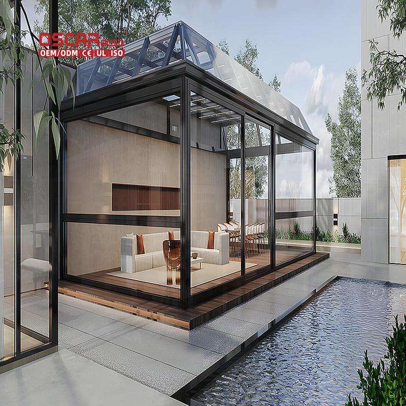 Couverture de terrasse en verre aluminium avec toit triangulaire, solarium commercial, hôtels, jardin d'hiver, terrasse, véranda