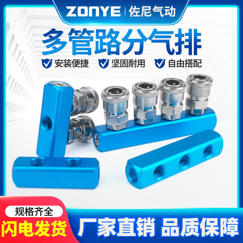 Bloc de distribution d'air pneumatique en aluminium, bande adaptatrice à 2 ou 4 trous pour systèmes pneumatiques