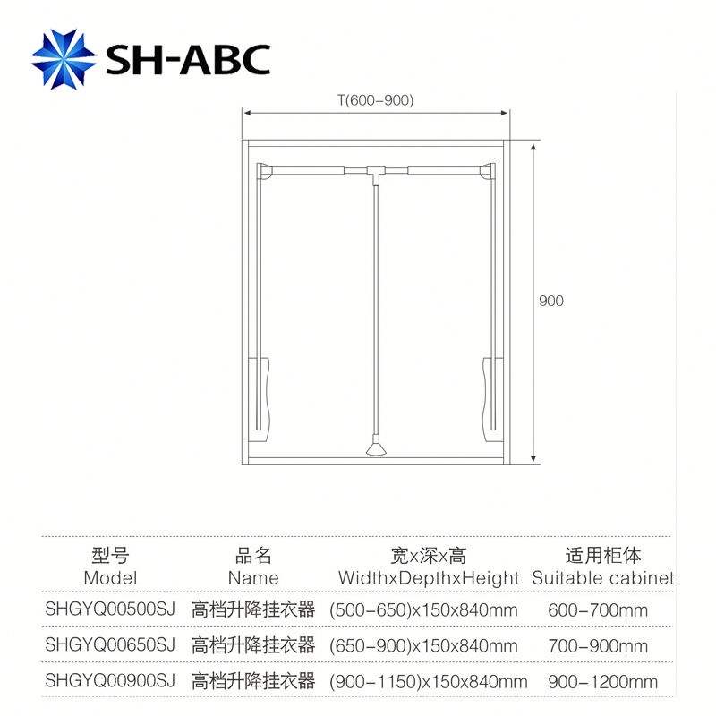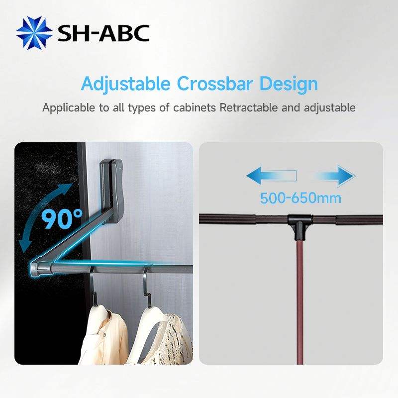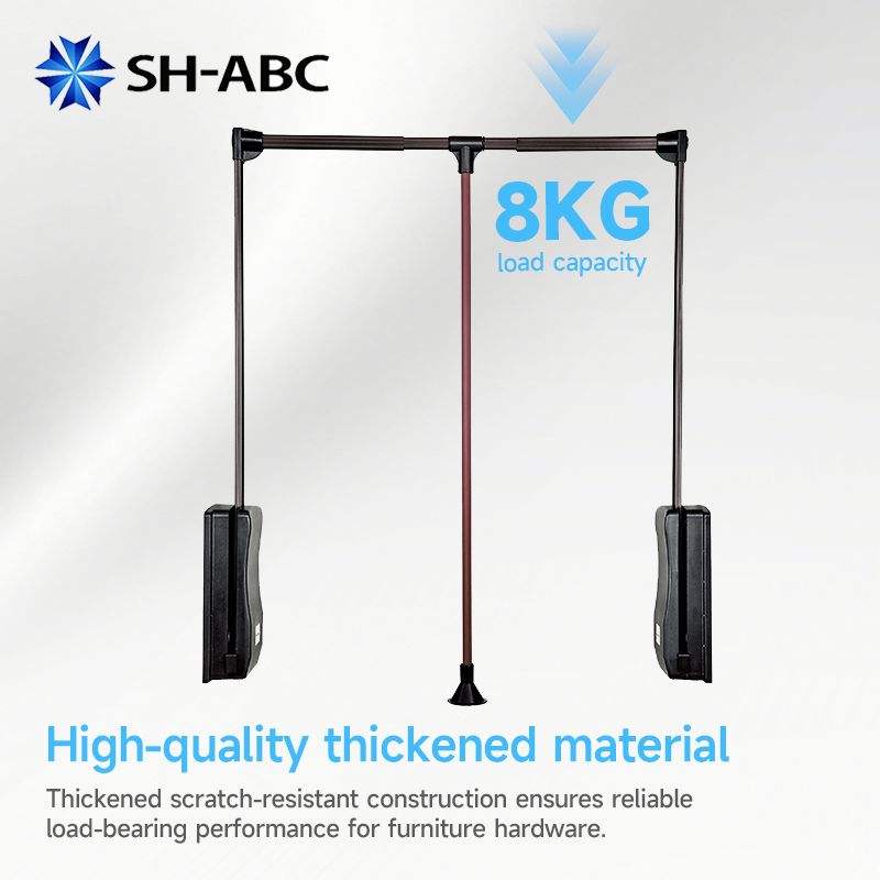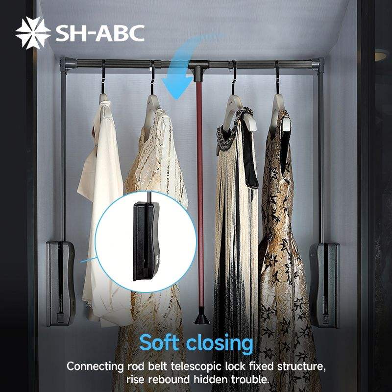 Tringle à vêtements extensible en aluminium avec amortisseur pour la descente et la remontée dans le placard