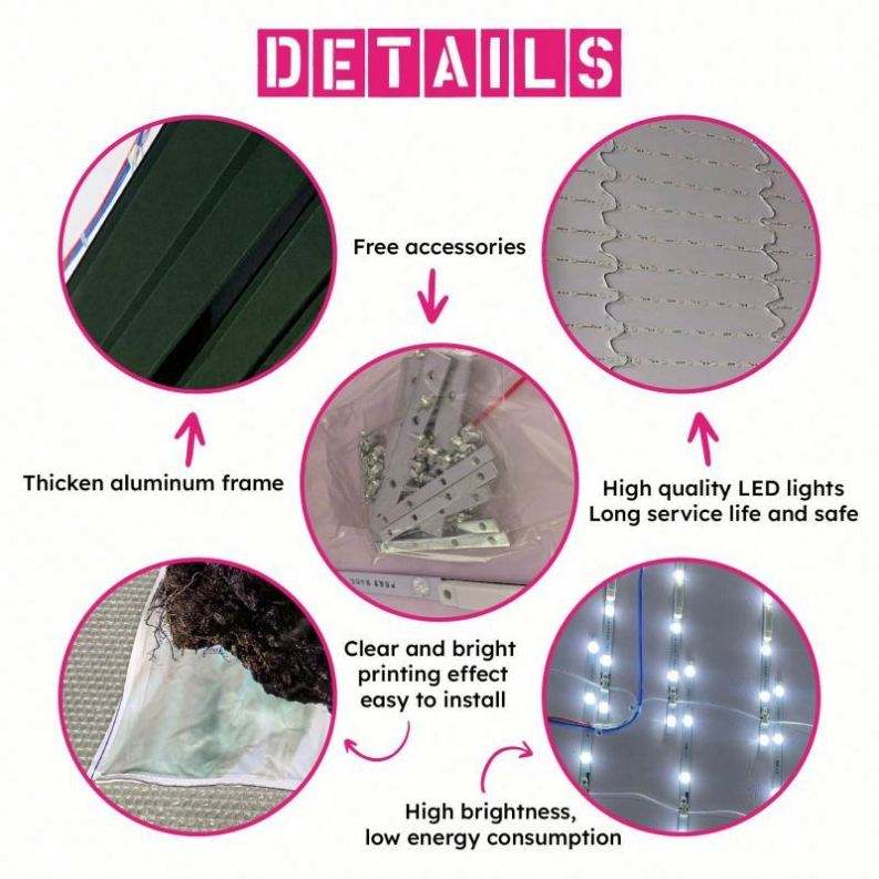 Boîte lumineuse publicitaire rectangulaire en aluminium à LED, personnalisée et imprimée, à paroi mince, pour les expositions