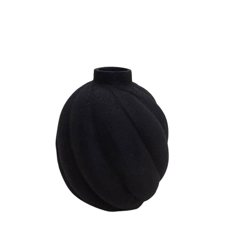 Vase à fleurs rond en aluminium avec gravure Texture noire Couleur Design moderne Jardinière en métal pour la décoration de la maison et du jardin