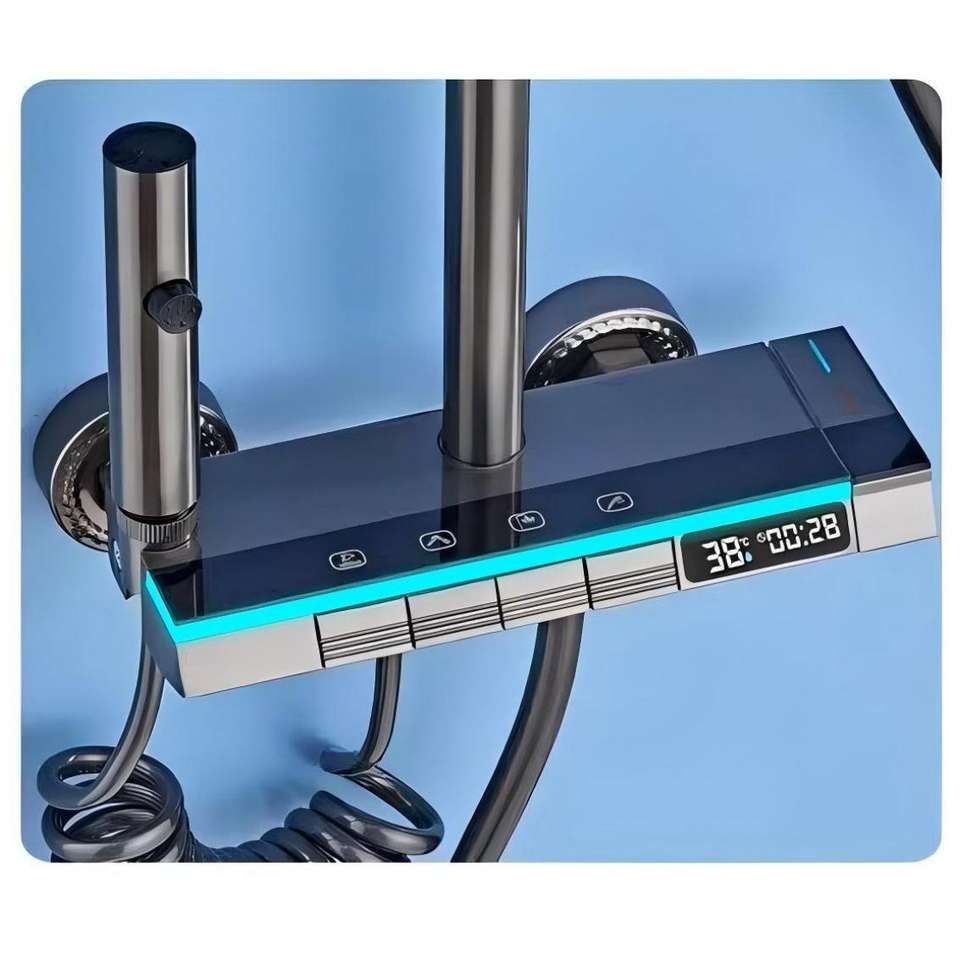 Système de douche en aluminium avec affichage LED et vanne thermostatique, pommeau de douche à effet pluie 4 fonctions, OEM et ODM pour hôtels