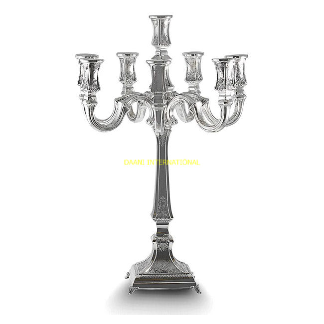 Candélabre en aluminium argenté à 7 bras Bougeoir de style vintage pour centres de table de mariage Banquets Hôtels Églises et décoration intérieure