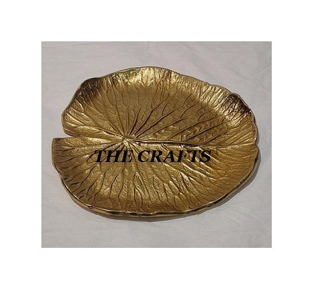 Plateau de courtoisie en aluminium couleur argent plat à feuilles avec plat de service à feuilles de qualité exclusive pour mariage et événement