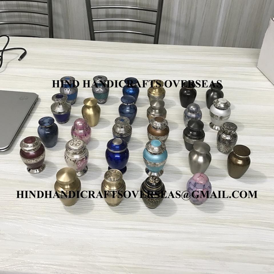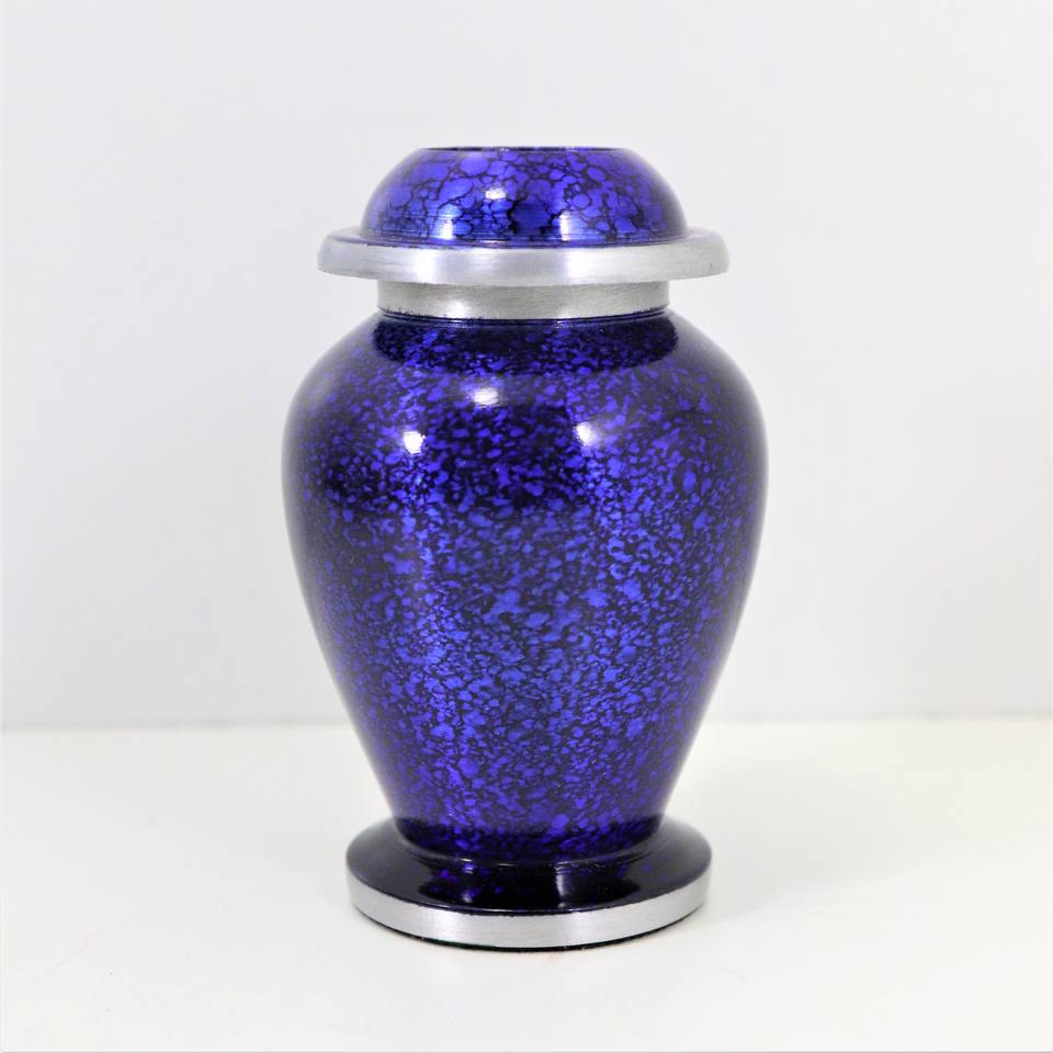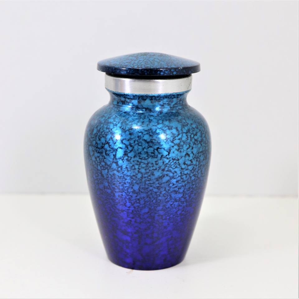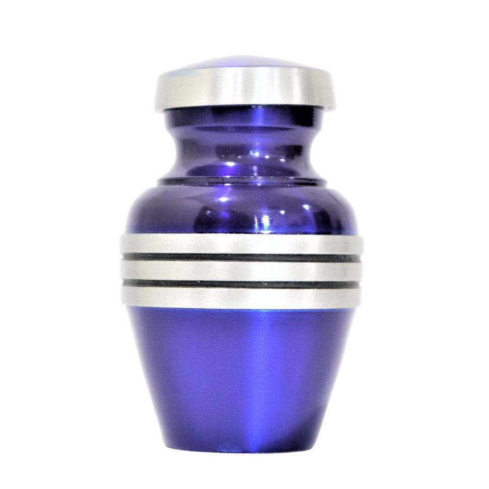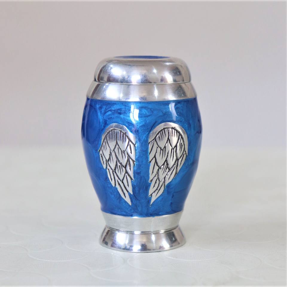 Article:Petites urnes souvenir bleues en aluminium pour cendres funéraires