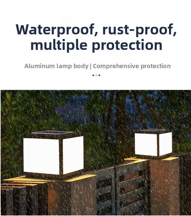 Aluminum Solar-powered Outdoor Post Light Waterproof and Rustproof and Can Be Used Continuously for Three Consecutive Rainy Days
