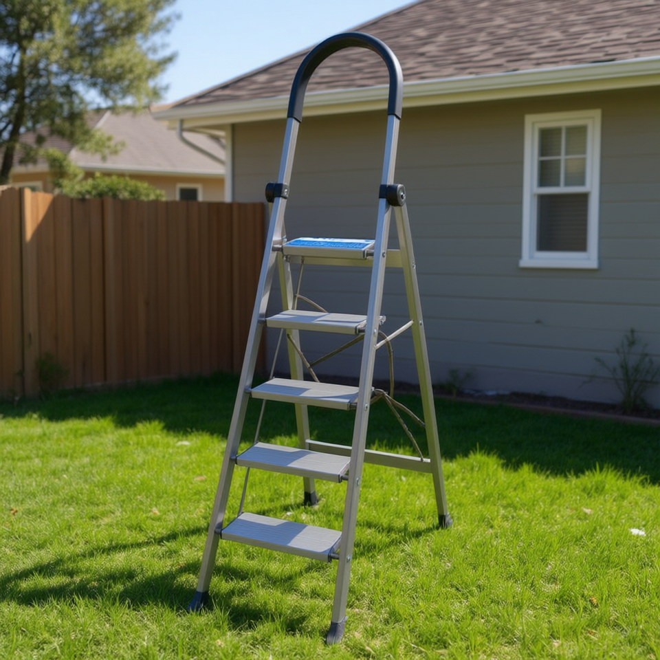 Échelle à marches en aluminium 5 marches pliable légère pour usage extérieur et domestique, design industriel moderne EN131