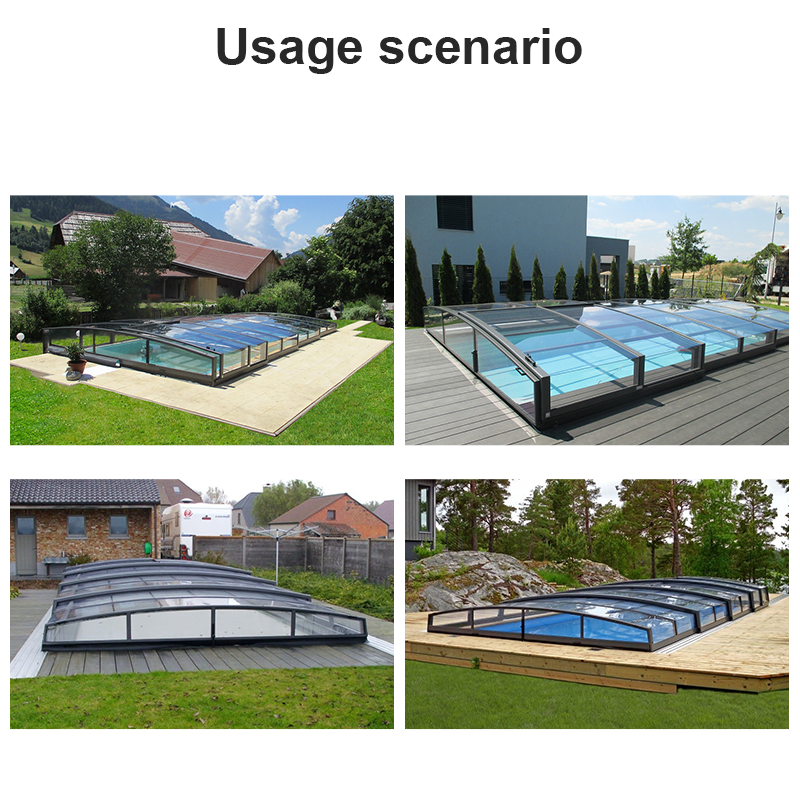 Couverture de piscine en aluminium rétractable, enceinte étanche, solution d'ombrage extérieure coulissante pour villa