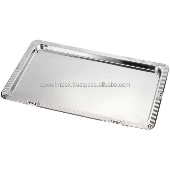 Plateau en aluminium Plateau de service de forme rectangulaire pour restaurant hôtel Plateau de service décoratif fait main