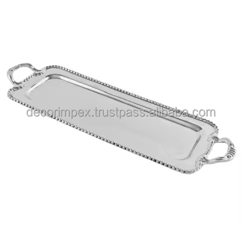 Plateaux en aluminium Vente à chaud Plateau rectangulaire brillant Poli en miroir Poignée de designer Plateau de service décoratif