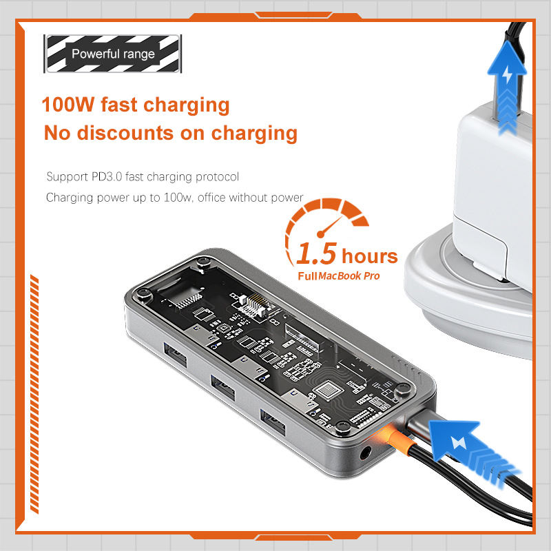 Hub USB en aluminium, hub USB Type C, adaptateur multifonction 3.0, 10 en 1 pour Macbook Pro, Ipad, Matebook, statut OEM, carte de charge ABS