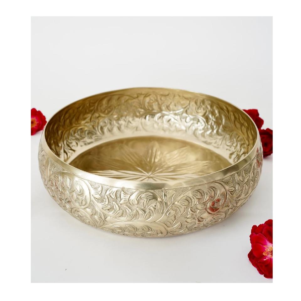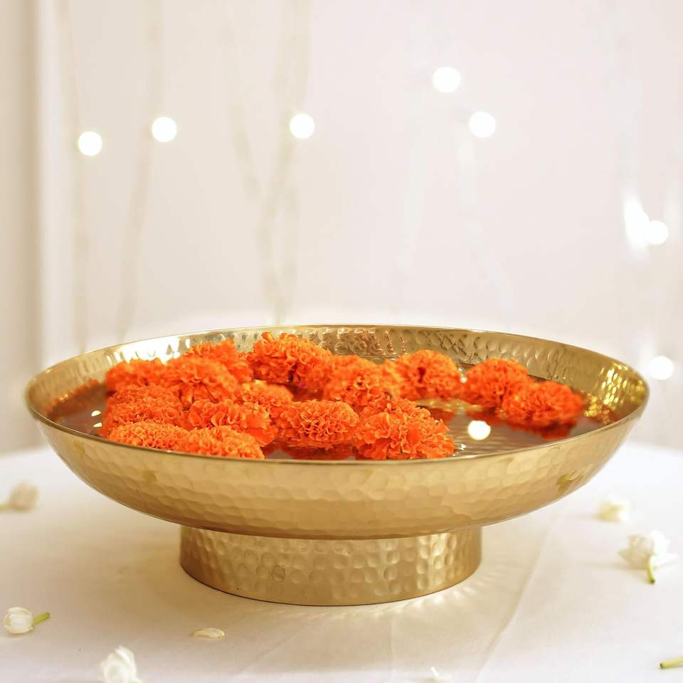 Aluminum iron Chitai Design Urli Bowl flower vase Indoor Outdoor Center Table Decor Haldi Mehndi Wedding Holi
