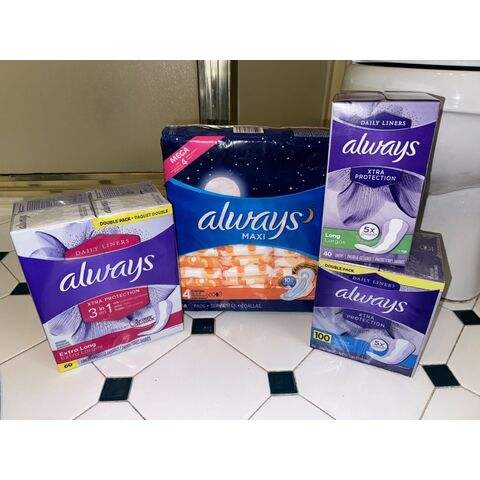 Always Radiant Feminine Pads for Women, Size 4, 60 Count, Overnight Absorbency, With Wings, Scented