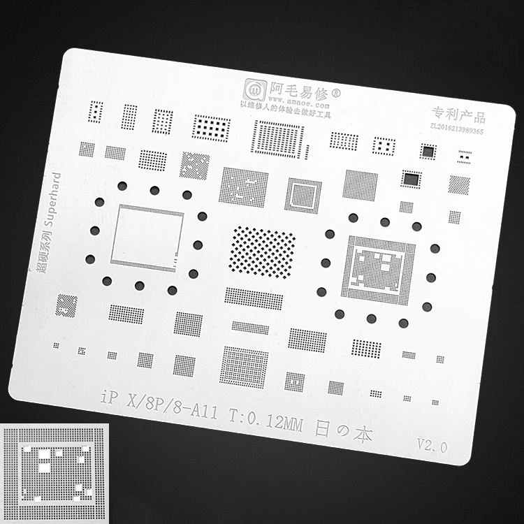 Amaoe BGA Pochoir de Reballing pour Réparation de Carte Mère (Couche Intermédiaire) pour iPhone X/8P/8, Réparation de CPU A11, SSD, IC, en Maille d'Acier pour Étain 0.12mm