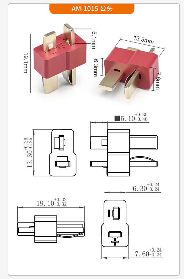 Ensemble de connecteurs en T plaqués or Amass AM1015-F AM1015-M, courant continu 20A pour batterie LiPo et trottinette électrique