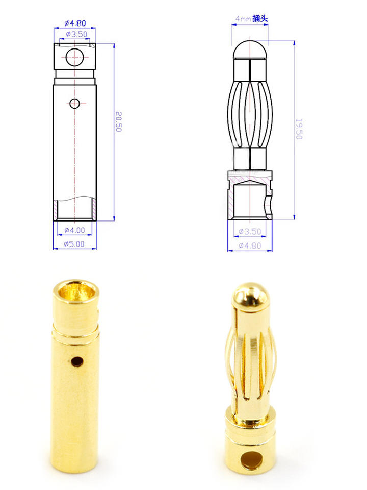 Ensemble de connecteurs à balle plaqués or Amass GC4010-F GC4010-M 4,0 mm, courant continu 32A pour moteur et ESC RC