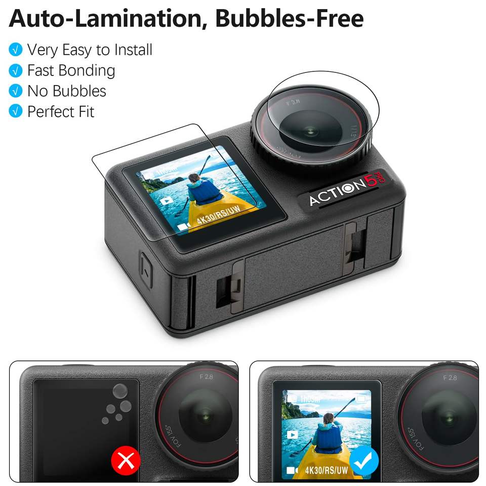 Ensemble Premium Amazear pour DJI Osmo Action 5 Pro, protection d'écran sans bulles, capuchon d'objectif en silicone, accessoires pour caméra sportive