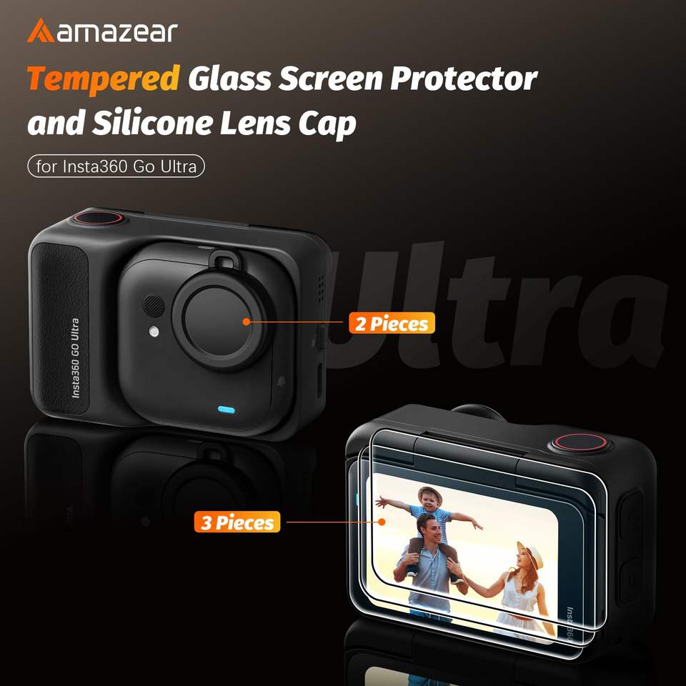 Amazear for Insta360 GO Ultra Screen & Lens Protector Kit 9H Hardness Tempered Glass with Anti-Scratch Silicone Lens Cover