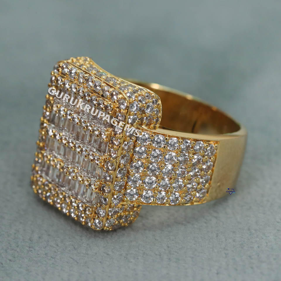 Incroyable bague hip hop pour homme en or jaune 14 kt cultivé en laboratoire avec des diamants ronds et taille baguette dans un design exclusif avec une clarté vvs