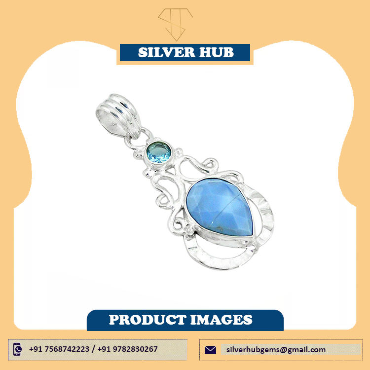 Product Name:925 Sterling Silver Natural Gemstone Blue Owyhee Opal Handmade Pendant