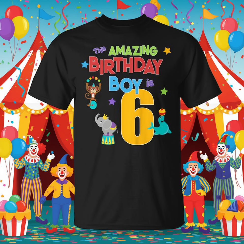 T-shirt « Amazing Birthday Boy Is Six » pour enfants de 6 ans, chemise de fête sur le thème du cirque