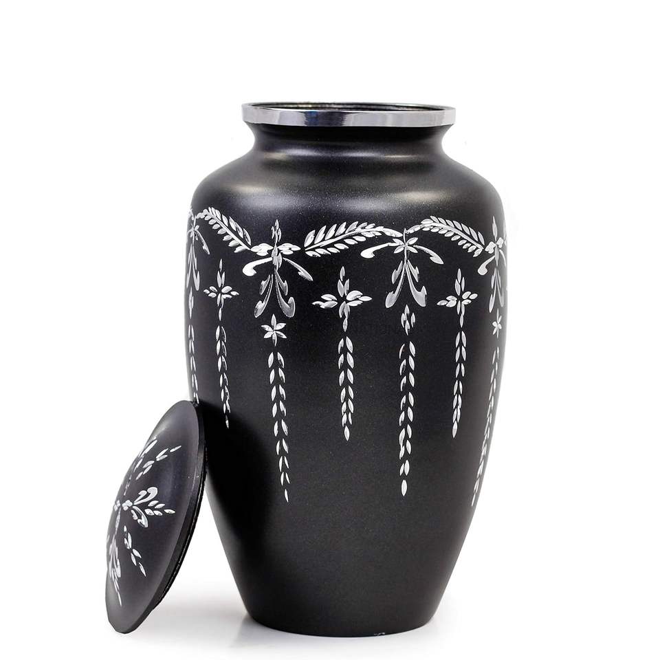 Incroyable urne funéraire en laiton au design noir avec feuille pour urne funéraire artisanale pour adulte urne funéraire pour cendres humaines