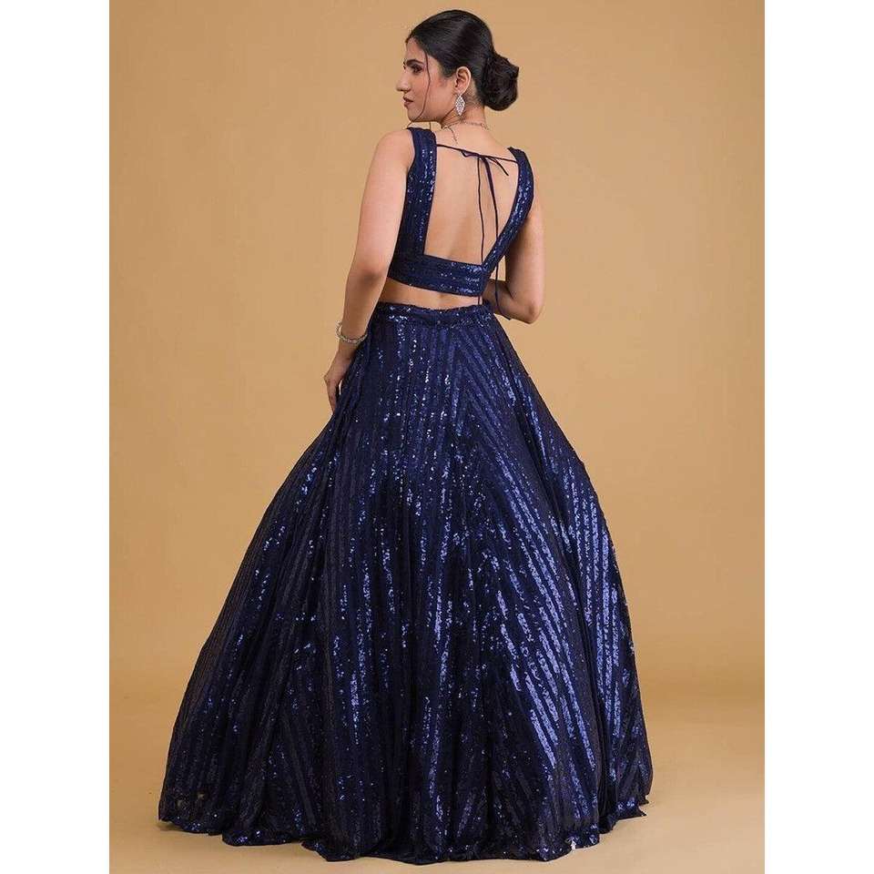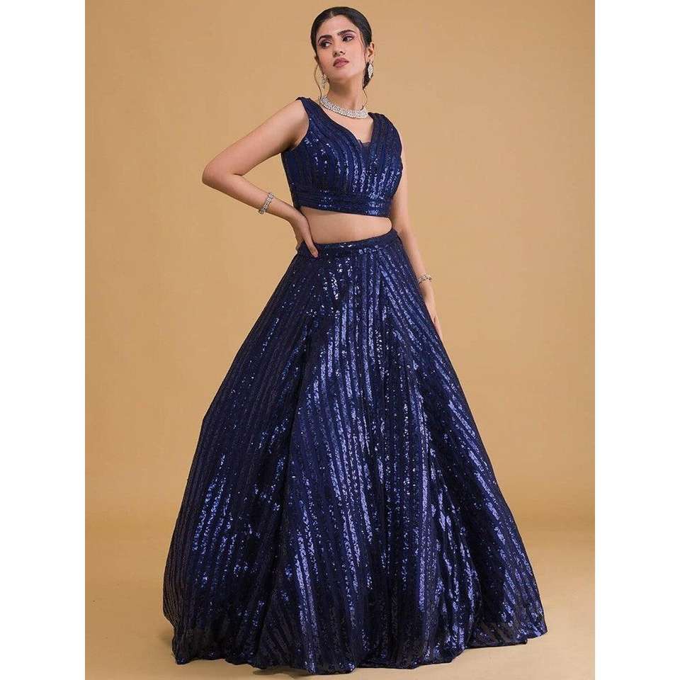 Incroyable filet brodé bleu Sangeet Wear Lehenga Choli