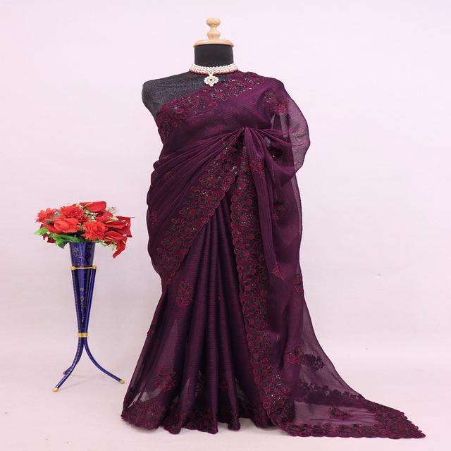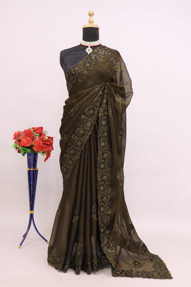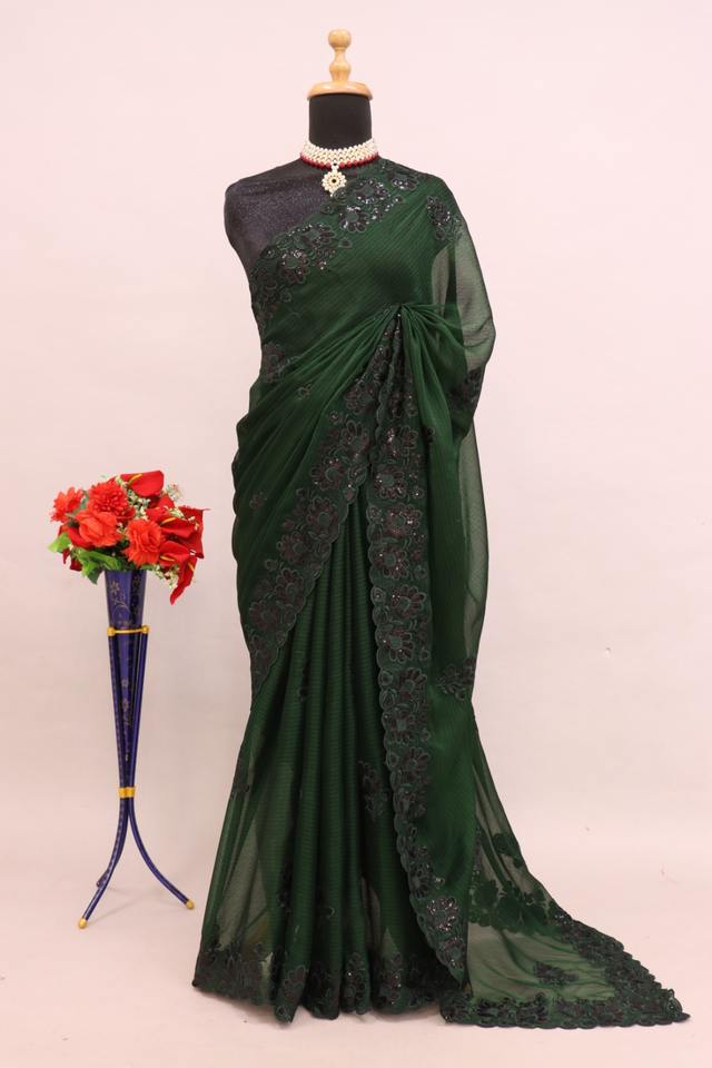 Étonnante Couleur Noora Chiffon Avec Paillettes Broderie Travail Saree Fabricant De L'Inde À Des Taux Bon Marché