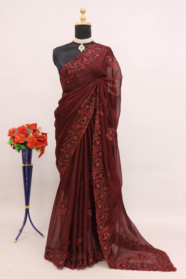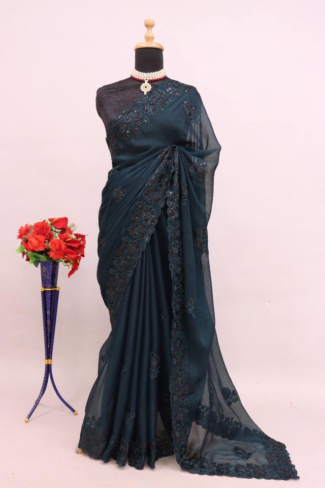 Product Name:Amazing Color Noora Chiffon With Sequins Embroidery Work Saree