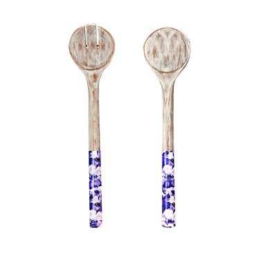 Ensemble de saladiers en émail au design incroyable, bois naturel avec poignée imprimée en émail, couverts pour servir la salade, prix de gros d'usine
