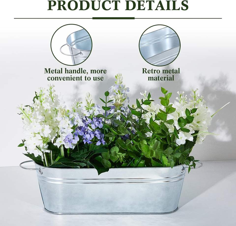 Jardinière en métal fini galvanisé au design étonnant avec poignées pour la maison et le jardin Jardinière décorative de fleurs de forme ovale
