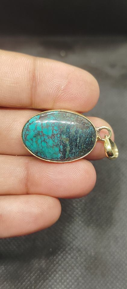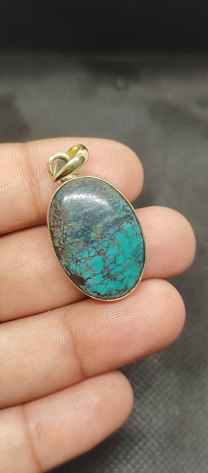 Collier pendentif en laiton plaqué or avec turquoise et chaîne à maillons, design étonnant, idéal pour un mariage