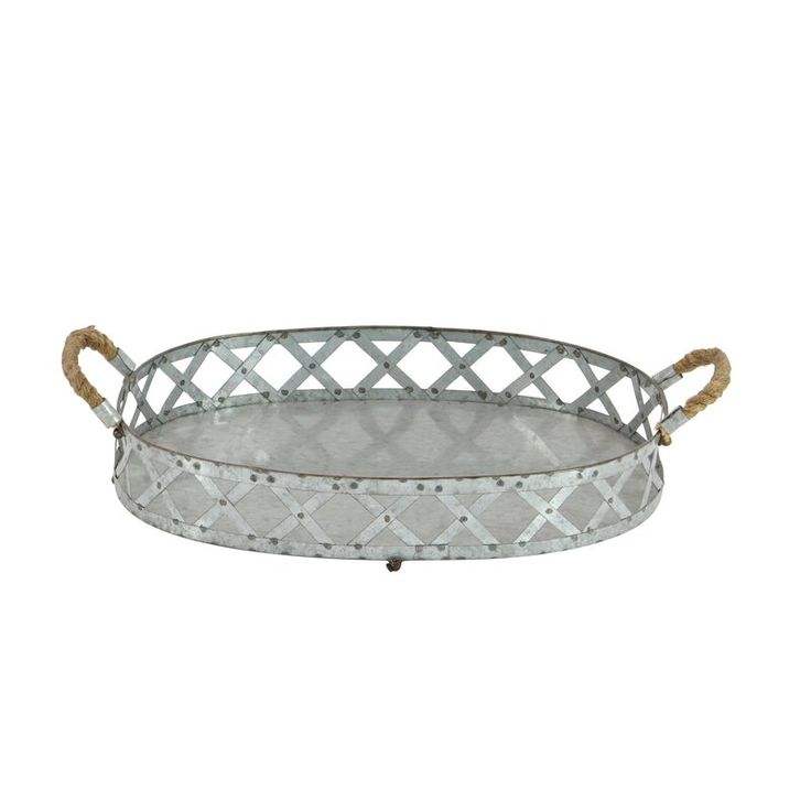 Design étonnant Ovale Métal Fer Galvanisé Plateaux de Service Poignée en Corde Maison Mariage Hôtels Plateaux de Service Alimentaire de Table